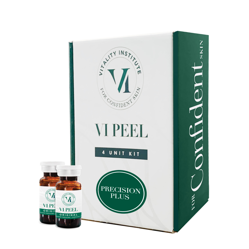 Erleben Sie die Wirkung eines mitteltiefen, medizinischen Peelings, das die Haut glatter, strahlender und gesünder aussehen lässt, mit minimaler Ausfallzeit. Sicher für alle Hauttöne (Fitzpatrick I–VI), wirkt VI Peel von innen heraus und behandelt Zeichen der Hautalterung, ungleichmäßigen Teint, Pigmentierungen und mehr.